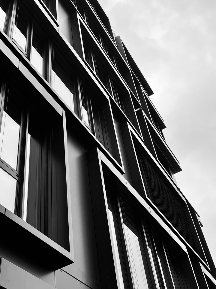 The shell is a reinforced concrete construction, the facade made of glass and a slender frame construction of black powder-coated metal. The ground floor, divided into three sections, is glazed, emphasising openness and transparency. The first area houses the lounge and reception, the next the conference spaces and offices, and the third houses the catering area. On the ground floor, the architecture with its triadic structure can be crossed at two points - on foot, by scooter or bicycle.